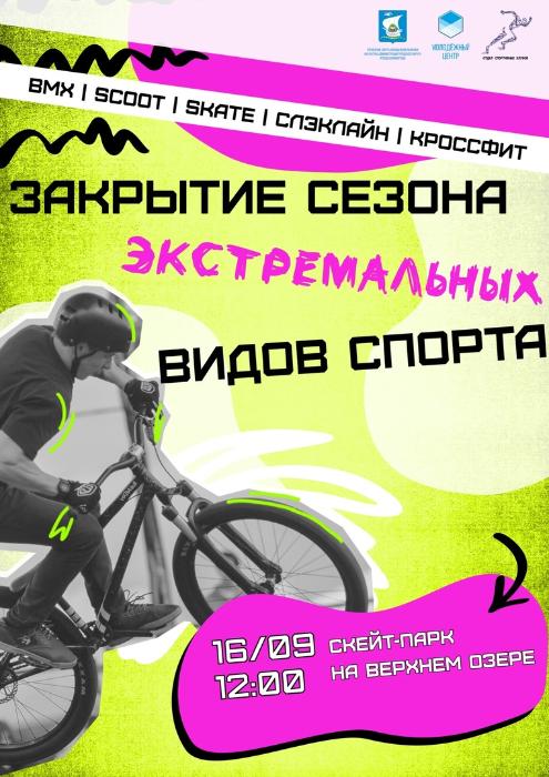 16 сентября на Верхнем озере состоится «Закрытие сезона экстремальных видов спорта». Принять участие в соревнованиях могут молодые люди от 10 до 35 лет, а стать зрителями - все желающие.