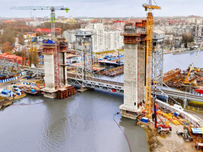 Фото: пресс-служба правительства Калининградской области В Калининграде закончили строить первые две башни ж/д дублёра двухъярусного моста.