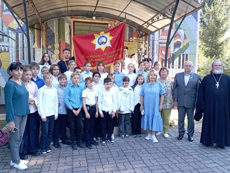 Также на мероприятие, приуроченное ко Дню воинской славы России, были приглашены протоиерей храма Вознесения Господня города Гурьевска Виктор Куркин, председатель Общественной организации ветеранов округа Виктор Орлов и ребята из кадетского класса Орловской школы, которые вынесли освященное знамя Дмитрия Донского.
