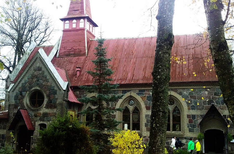 Несколько слов об истории храма в Янтарном. Кирха поселка Пальмникен (ныне Янтарный) была заложена в 1887 году и достроена в 1892 году по проекту Вильгельма-Лоренца Бесселя-Лорка. Кирха была возведена как копия капеллы Святого Георгия в саду королевского замка Монбиньон в предместье Берлина. Для ее сооружения использовались валуны и фигурный кирпич. Витражная роспись на окнах отражала жизнь Пруссии. Внутренний дизайн выполнен в романском стиле. Ранее здесь располагались два колокола и орган, которые не сохранить. Во время Великой Отечественной войны здание практически не пострадало, а в послевоенное время в нем были клуб, бильярдная, склад и спортзал.