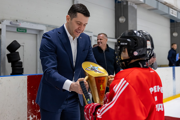 В церемонии передачи трофея и сладкого подарка детям на ледовой арене областной дирекции спортсооружений в Калининграде сегодня, 13 января 2023 года, участвовал губернатор Калининградской области Антон Алиханов , начальник регионального пограничного управления ФСБ России генерал-лейтенант Иван Краснощёков, представитель оргкомитета соревнований Денис Лобанчук и президент Калининградской областной федерации хоккея Олег Крамаренко.