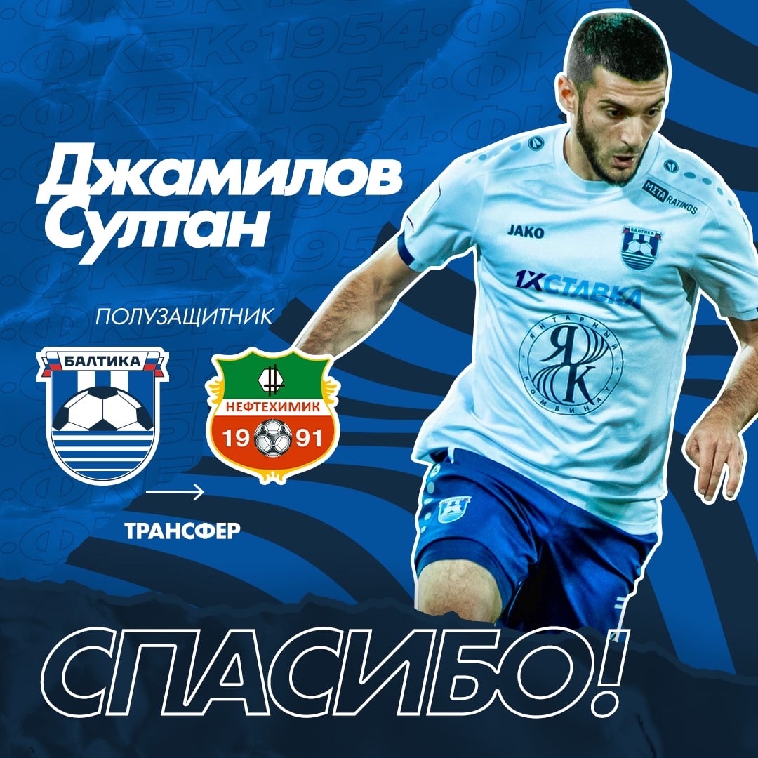 Между футбольными клубами «Балтика» и «Нефтехимик» достигнута договоренность о трансфере Султана Джамилова.