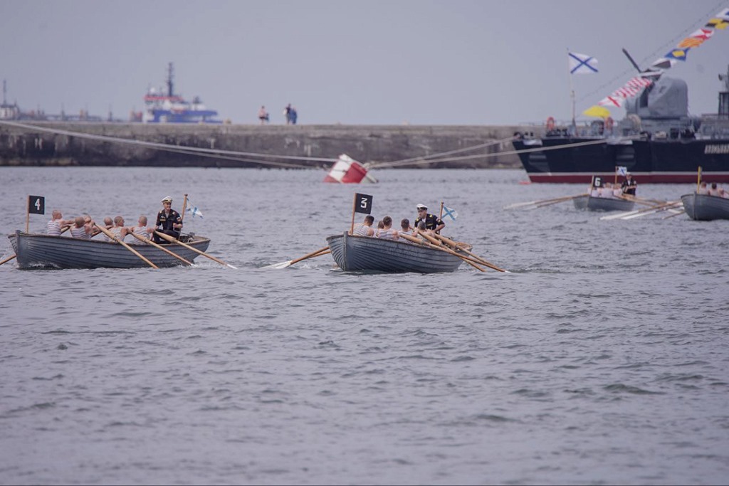 Старт на гребных судах типа «ЯЛ-6» провели 28 июля в судоходном канале между входными молами Балтийска. На дистанции одной морской мили, что составляет 1 852 метра, состязались шесть экипажей. Победу праздновали представители Балтийской военно-морской базы, опередив в тройке призёров на вёслах сослуживцев из смешанной авиадивизии ДКБФ и сборную 336 бригады Морской пехоты.