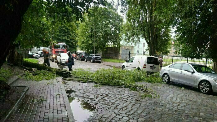 В Калининграде уже второй день льют дожди и бушуют грозы с ветром. Как город переживает непогоду — в подборке «Клопс».