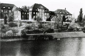 Построенная вне центра города в 1910/14 гг. психиатрическая клиника - сейчас Детская областная больница, Альте Пиллауэр Ландштрассе — ул. Дмитрия Донского, 23 расположилась в очень живописном месте на высоком краю территории, спускающейся на восток к открытому рву Хуфена.