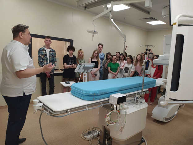 Известно лишь, что на встречу с врачами собрались 25 школьников. Экскурсию провели заведующий отделением рентгенодиагностики и заведующий отделением радионуклидной диагностики.