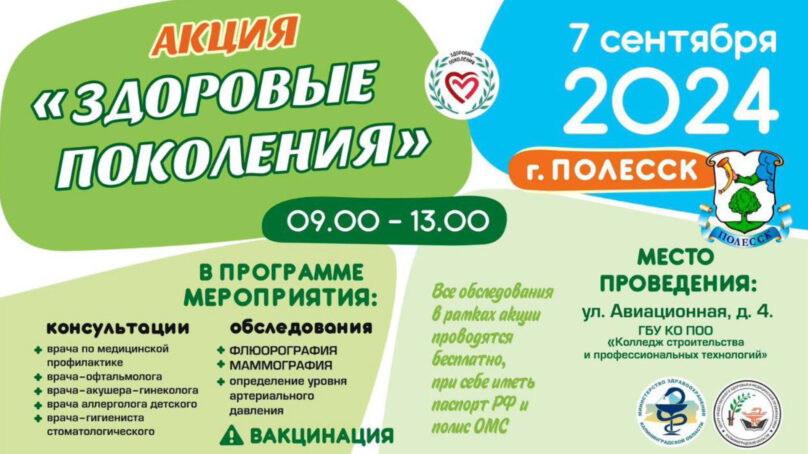 Полесский городской округ предлагает бесплатные обследования и вакцинацию для жителей.