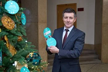 Накануне министр здравоохранения Калининградской области Сергей Дмитриев снял с «Елки желаний» новогоднюю игрушку-шар, обладателем которого оказался мальчик Сергей из Калининграда