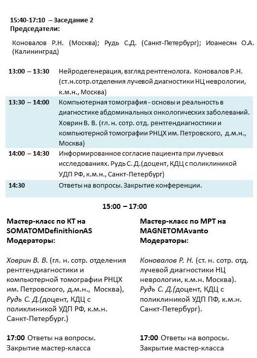 В программе - выступления ведущих специалистов в области лучевой диагностики из Москвы, Санкт-Петербурга, Калининграда.