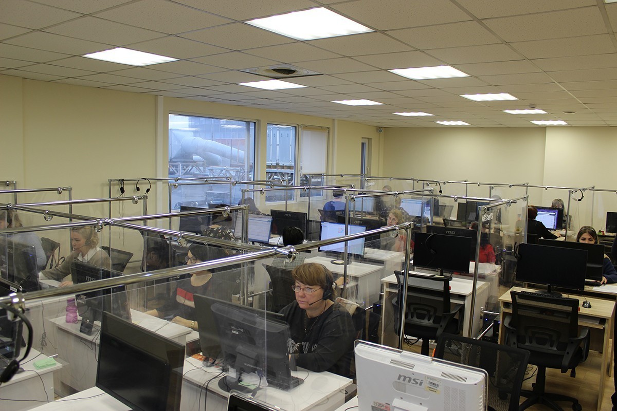 Работа контакт-центра выстроена в бесперебойном режиме с 7 до 20 часов без праздников и выходных дней. Операторы работают по гибкому графику. В первую смену дежурство сотрудников на линии организовано с 7 до 16 часов, в среднем, суммарно работают 56 операторов, в вечернее время - с 16 до 20 часов, когда на линии остается ориентировочно 14 сотрудников. Максимальный поток звонков приходится на утро до 11.30 – от 60 до 70 процентов всех обращений. Фотографии: