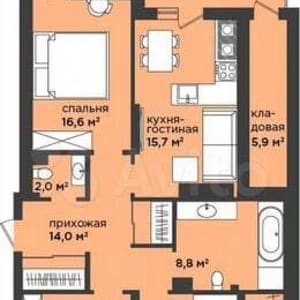 - кухня-гостиная 15,7 кв.м. с выходом на балкон 5,8 кв.м. и кладовой 5,9 кв.м.