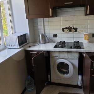 Небольшая и уютная кухня располагает всем необходимым (газовая плита, холодильник, стиральная машина, микроволновая печь, эл.чайник, посуда), что может помочь моим гостям почувствовать себя как дома.